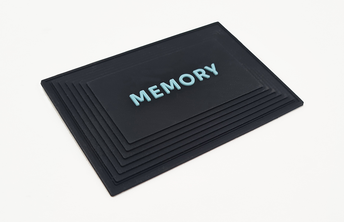 Etichetta in silicone microiniezione opaco. Il silicone è un materiale che deriva dalla risorsa naturale silicio, non contiene petrolio, può essere riciclato, è per sua natura antibatterico e non si disperde nell’ambiente in micro-frammenti.