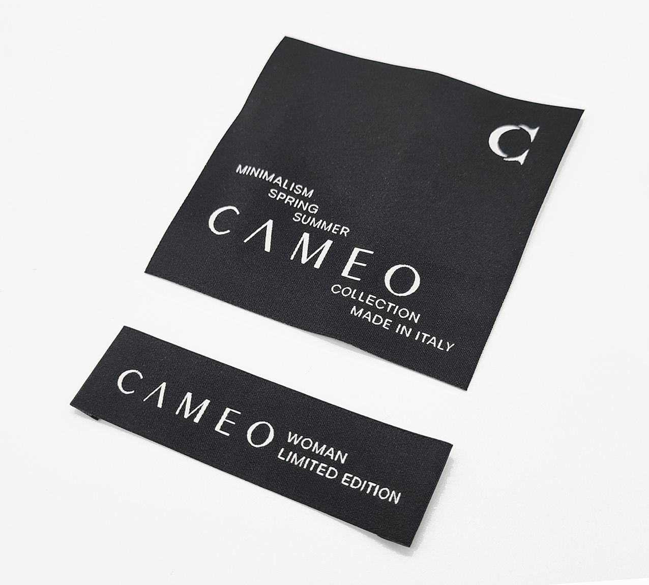 Set di etichette tessute in altissima definizione, caratterizzate dalla morbidezza al tatto, colori pieni e saturi e dai dettagli definiti con precisione.
