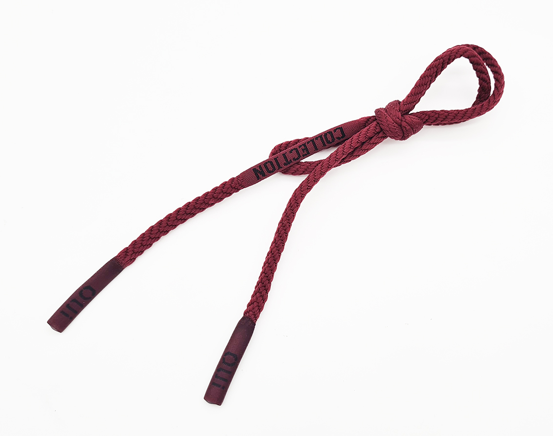 Coulisse intrecciata con logo jacquard e terminali con finitura in silicone semitrasparente