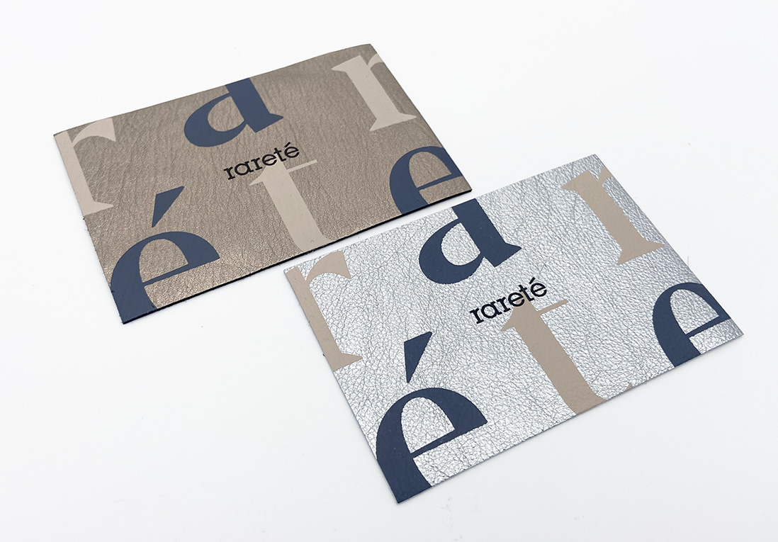 Metallic leather label with 2-color screen printing and hot foil stamping