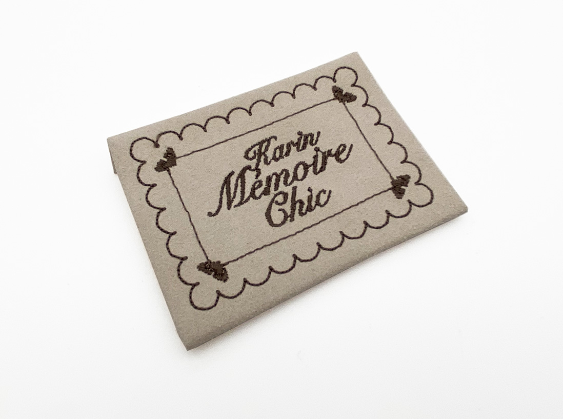 Etichetta su base nabuk e micro ricamo piegata sui 4 lati