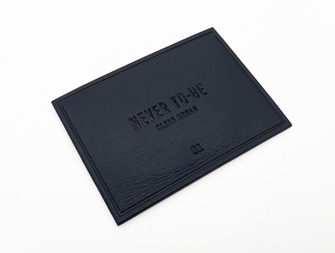 Leather label worked in low relief tone on tone