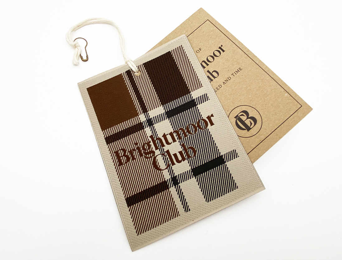 Cartellino composto da libricino in carta e etichetta tessuta