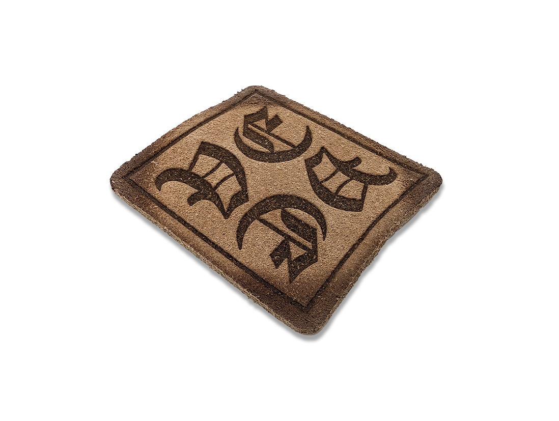 Nubuck label, heat-stamped logo, waxed edges