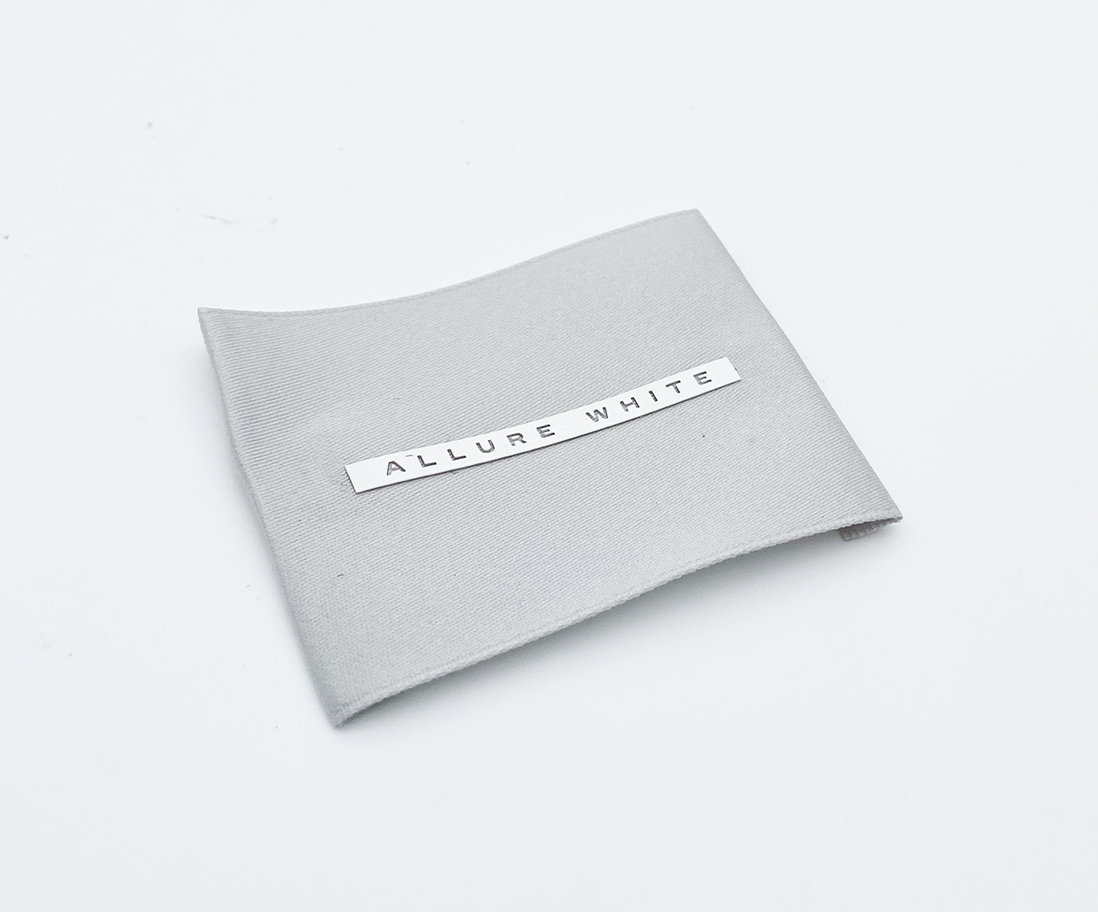 Label with matte silicone microinjection print on a cotton satin base
