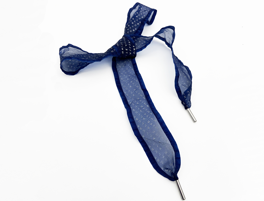 Coulisse in organza con stampa serigrafica argento terminali in metallo col. argento