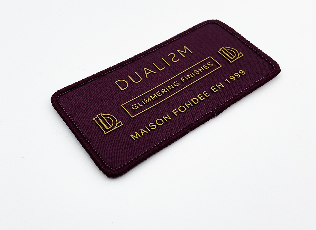 Silicone micro-injection patch on a matte satin base with perimeter embroidery